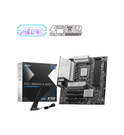 La carte mère PRO B860M-A WIFI arbore un design simple et efficace avec des teintes argentées harmonieuses qui s'intègreront parfaitement dans les PC noirs et blancs. Elle intègre de nombreuses fonctionnalités exclusives MSI, la norme Wi-Fi 7 efficace avec une antenne EZ Antenna, les solutions 5G LAN, Thunderbolt 4, PCIe 5.0 M.2 avec slot EZ M.2 Shield Frozr II ainsi qu'un connecteur d'alimentation PCIe supplémentaire. Grâce à toutes ces caractéristiques, la carte mère PRO X870-P WIFI est optimisée pour les processeurs Intel® Core™ Ultra.